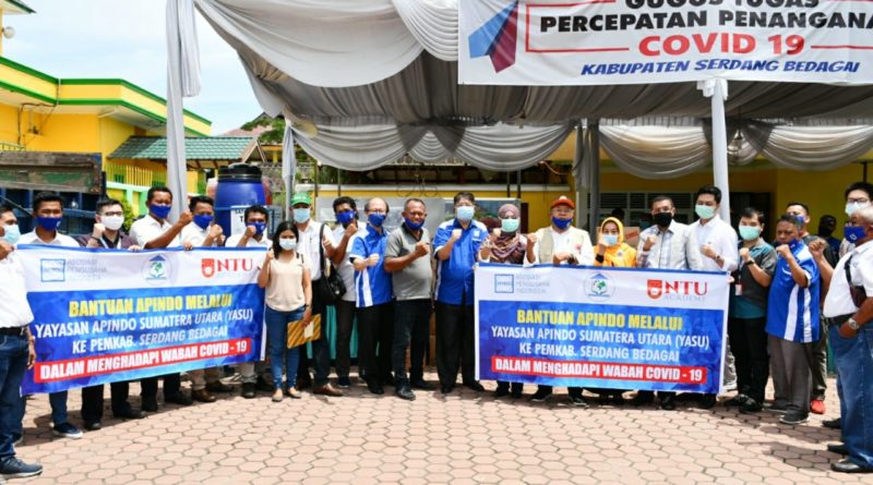 Serdang Bedagai, – Posko Gugus Tugas Percepatan Penanganan COVID-19 Kabupaten Serdang Bedagai (Sergai) menerima bantuan dari Asosiasi Pengusaha Indonesia (APINDO) Sumatera Utara bersama DPK APINDO Sergai, di posko Gugus Tugas Covid-19 Sergai Rumah Dinas Bupati di Sei Rampah, Rabu (13/05/2020).