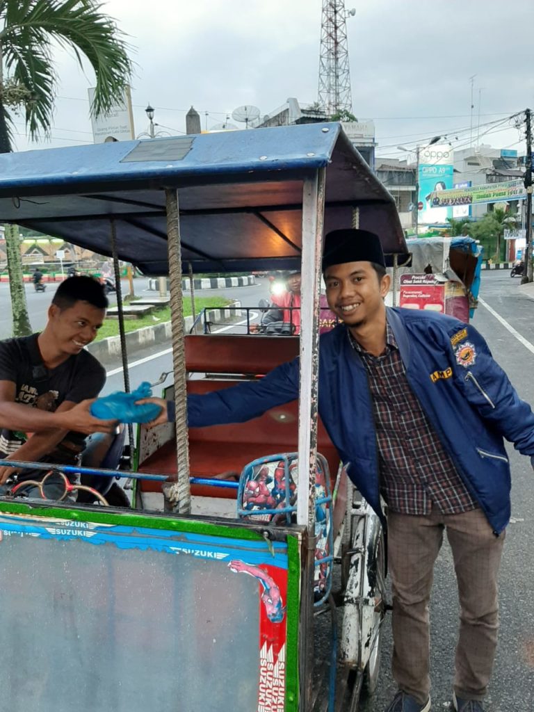 Kegiatan memberikan makanan tersebut juga diberikan kepada para pembecak motor serta penarik ojek yang masih semangat mencari redzeky dibulan suci ramadhan.