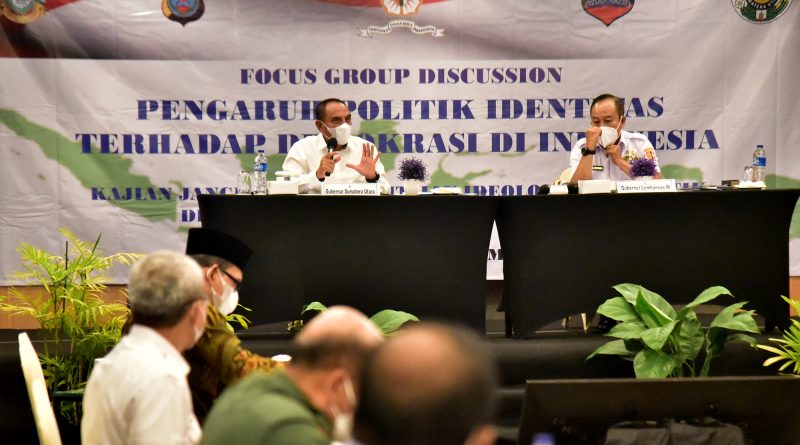Medan,- Dua Gubernur menghadiri diskusi kelompok terarah membahas Pengaruh Politik Identitas Terhadap Demokrasi di Indonesia, yang digelar oleh Tim Pengkajian Lembaga Ketahanan Nasional (Lemhanas) RI di Hotel Radisson Medan, Jalan H Adam Malik Medan, Rabu (17/3). Sumatera Utara (Sumut) menjadi tujuan kajian karena memiliki karakteristik kebhinekaan yang membedakannya dengan daerah lain.