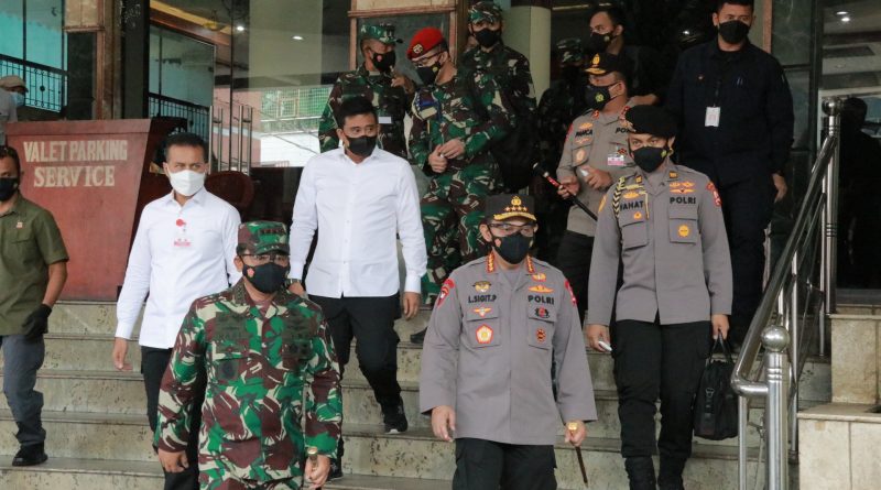 Medan- Wali Kota Medan Muhammad Bobby Afif Nasution mendampingi kunjungan Kapolri Jenderal Pol Listyo Sigit Prabowo dan Panglima TNI Marsekal Hadi Tjahjanto di Kota Medan, Sabtu (14/8/2021).