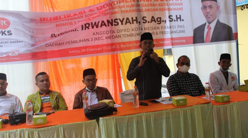Desakan ini disampaikan, Irwansyah yang juga anggota Komisi III saat melaksanakan sosialisasi Produk Hukum Ke II Tahun 2022, Peraturan Daerah Nomor 5 Tahun 2015 Tentang Penanggulangan Kemiskinan di Kota Medan yang dilaksanakan di dua lokasi, Jalan Pertiwi Kel. Bantan Kec. Medan Tembung dan Jalan. Dorowati Gg. Wongso Kel. Sidorame Barat 2 Kec. Medan Perjuangan, Sabtu dan Minggu (26-27/02/2022) di