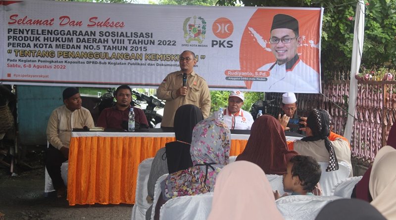 Rudiyanto menyampaikan hal ini saat melaksanakan Sosialisasi Peraturan Daerah (Sosperda) Nomor 5 Tahun 2015 2015 tentang Penanggulangan Kemiskinan di Kota Medan dilaksanakan di Jalan Medan Area Selatan, Lorong 10, Kelurahan Sukaramai I, Kecamatan Medan Area dan Jalan Panglima Denai Gg. Hj. Hamimah, Kelurahan Denai, Kecamatan Medan Denai, Ahad (07/08/2022).