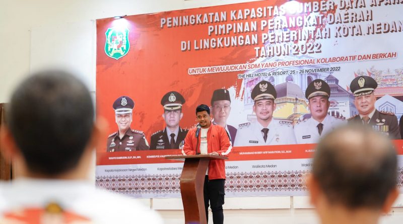 Medan, – Ada dua poin penekanan yang disampaikan Wali Kota Medan Bobby Nasution dalam acara Peningkatan Kapasitas Sumber Daya Aparatur Pimpinan Perangkat Daerah di Lingkungan Pemko Medan Tahun 2022 yang berlangsung di The Hill Hotel dan Resort Sibolangit, Jumat (25/11) malam. Poin pertama harus berani memaafkan dan meminta maaf, sedangkan yang kedua harus dapat berterima kasih.