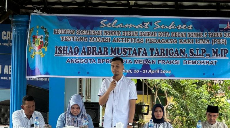 Medan,- Anggota DPRD Medan Fraksi Partai Demokrat, Ishaq Abrar Mustafa Tarigan, S.IP, M.IP mengharapkan Perda Kota Medan Nomor 5 Tahun 2022 tentang Zonasi Aktifitas Pedagang Kaki Lima (PK5) melahirkan kenyamanan dan ktertiban sesuai dengan tujuan dan harapan Perda ini diciptakan.