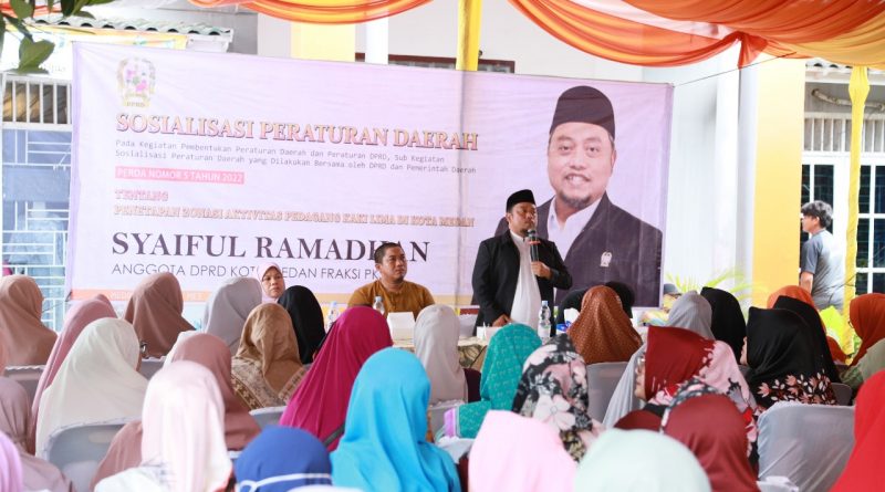 Harapan ini disampaikan Syaiful Ramadhan saat menyampaikan materi sosialisasi produk hukum Ke 8 Tahun Anggaran 2023, Peraturan Daerah Nomor 5 Tahun 2022 tentang Penetapan Zonasi Aktifitas Pedagang Kaki Lima di Kota Medan yang dilaksanakan di sejumlah lokasi, Jalan Pasar 1 No.29 Kel.Tj Sari Kec.Medan Selayang , Jalan Eka Suka 8 Kel.Gedung Johor, Kec. Medan Johor, Jalan Pantai Burung 2 Kel.Aur, Kec.Medan Maimon, Jalan Mongonsidi No. 17 Kel.Polonia, Kec.Medan Polonia, Sabtu-Ahad (25-26/05/2024).