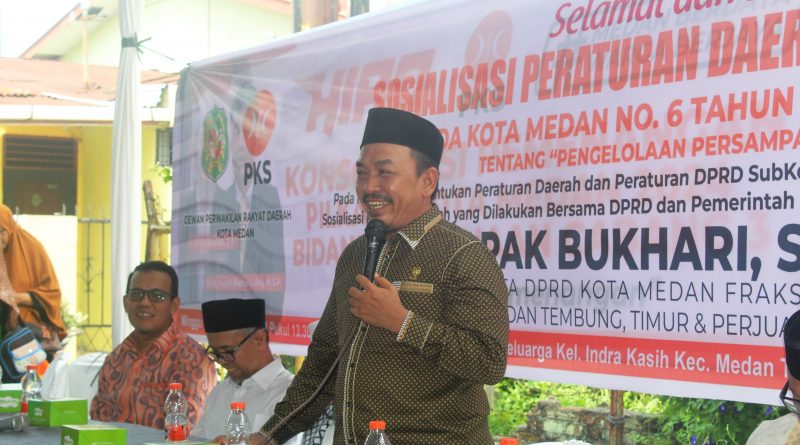 Medan,- Anggota DPRD Medan Fraksi Partai Keadilan Sejahtera (FPKS) Bukhari,SE menyampaikan persoalan sampah yang selama ini menjadi masalah di Kota Medan akan bisa teratasi dengan adanya kerjasama masyarakat dan pemerintah. Keduanya wajib bersinergi dengan masing-masing menjalankan hak dan kewajibannya.