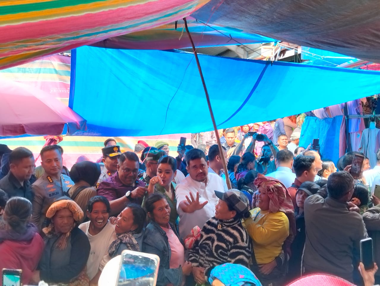 Kedatangan Gibran dan Bobby disambut antusias warga dan masyarakat yang berbelanja. Tak ayal momen ini pun dimanfaatkan para warga untuk berfoto bersama dan bersalaman. Tak ayal sesekali warga meneriaki nama kedua pemimpin muda itu.