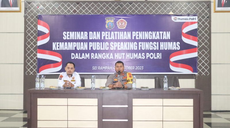 Read MoreSergai, – Polres Sergai mengadakan Seminar dan Pelatihan Peningkatan Kemampuan Public Speaking fungsi Humas dalam rangka HUT Humas Polri yang